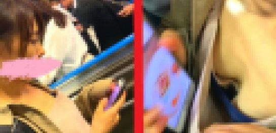 【生P・音声映像無修正】 【モデルの無修正顔つき】 混雑で身動きの取れない車内で