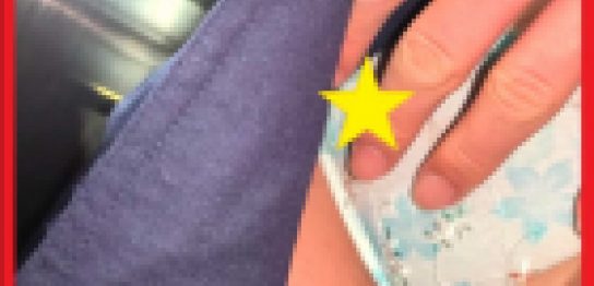混雑した電車内で、ニットワンピを恐る恐るめくりあげ ↓ 完全に露わになったタイツ