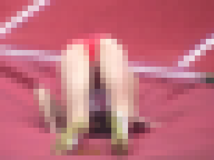 走り高跳び……マット側・上方から撮影。これまた室内ならでは、敷かれたマットがぶ厚過ぎ、逆立ちしたまんま突き刺さった首が抜けないちゃん、という、嬉しくも笑えるシーン頻出。その他、直しても直しても、その場しのぎにしかならない、謎のデカパン疑惑なハ*パンちゃんも。