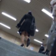 その後改札を出たお姉さんも追跡。エスカレーターでスカートめくりしてスカートの中も観察中です。