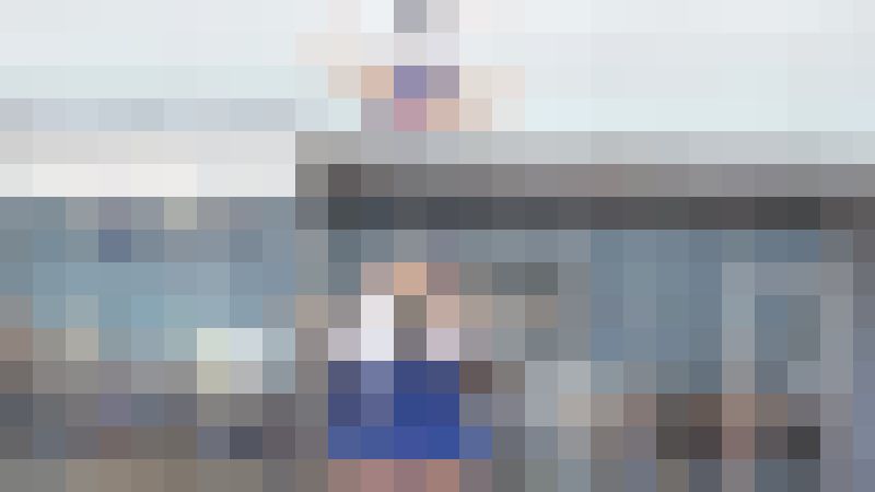 本動画は地域のお祭りに出演したチアダンスチームの演技を撮影したものです。衣装は白と青を基調としたもので、青いアンダーを履いています。