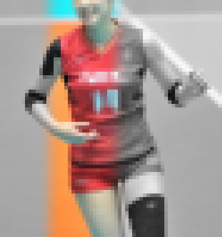 *この作品はアスリートの技術の高さと、激しい動きに追随するユニフォームの優秀性を生地レベルで表現したものです。