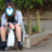 しゃがみ込み大胆にM字パンチラをする姿や