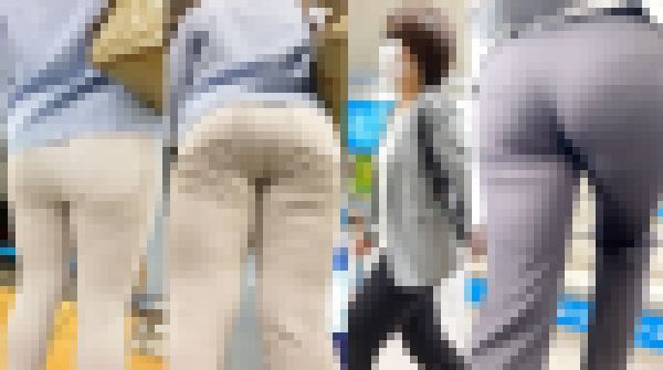 14:57~黒いパンツスタイルなのにお尻が大きいせいでパンティーラインがクッキリな通勤既婚者さん